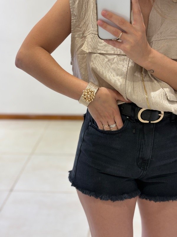 Brazalete de cuero con dos botones para reglar el ancho de tu muñeca. Largo total 21cm.