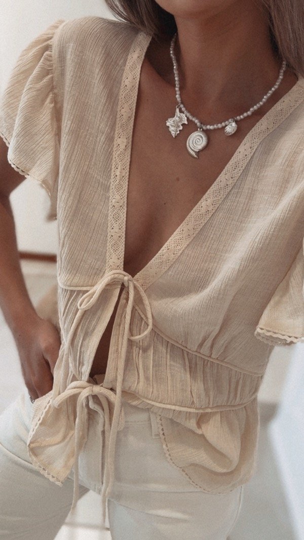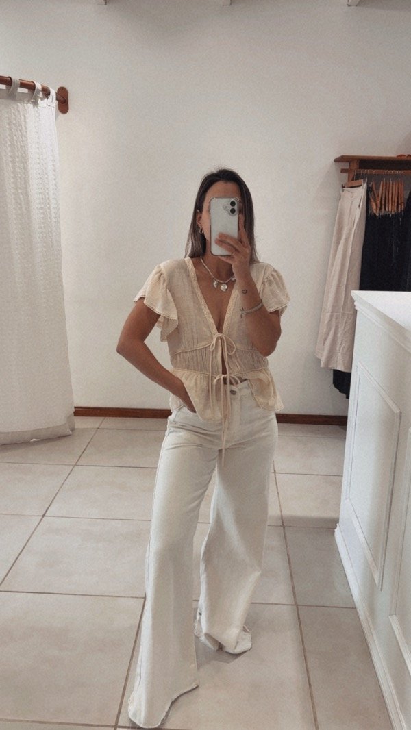 Blusa importada de bambula con puntilla y dos tiras para preder adelante.