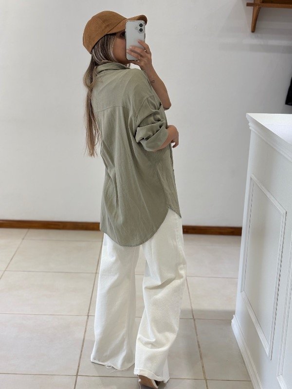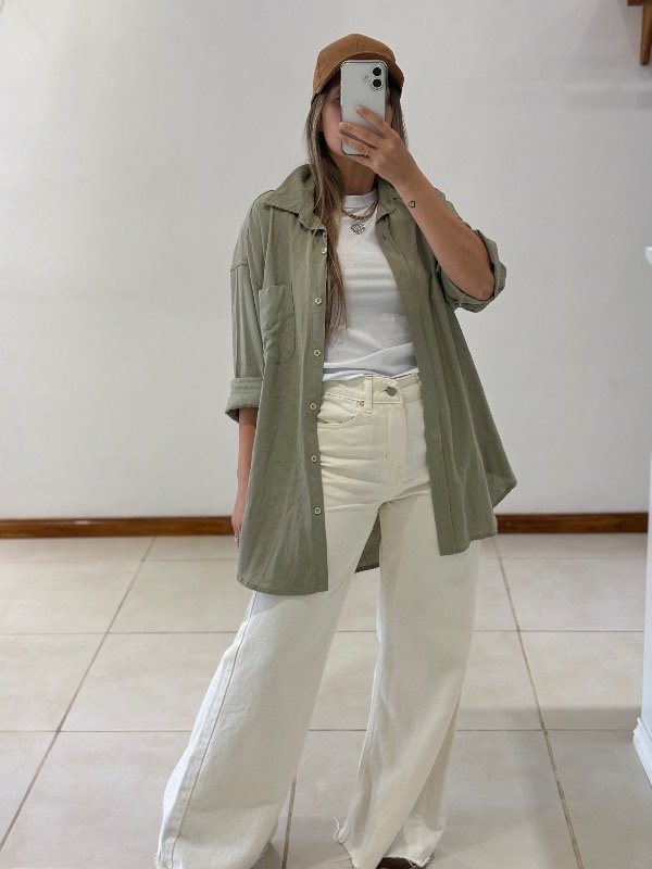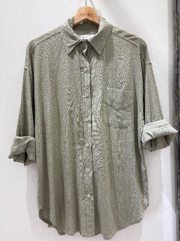 Camisa de lino con un bolsillo. Pre lavada (para que no tome tanto luego del lavado)