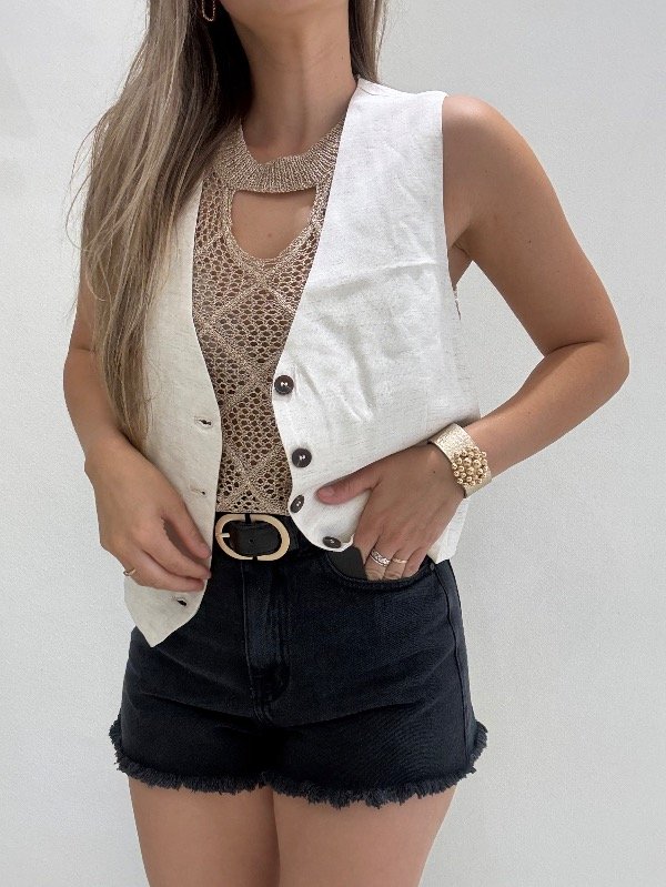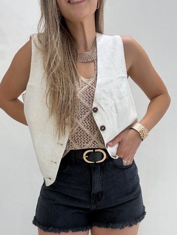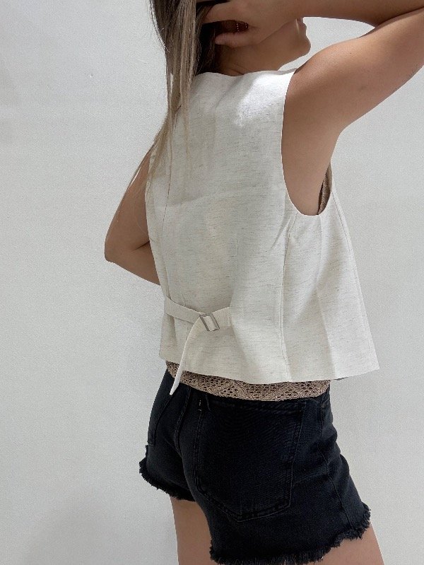 Chaleco de lino corte sastero con 4 botones, forrado.