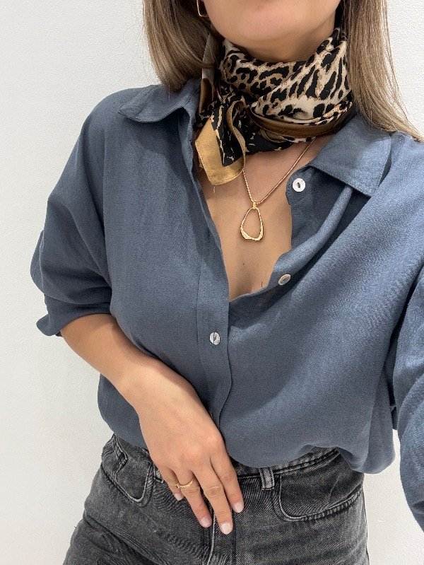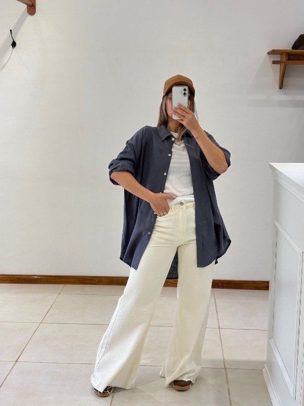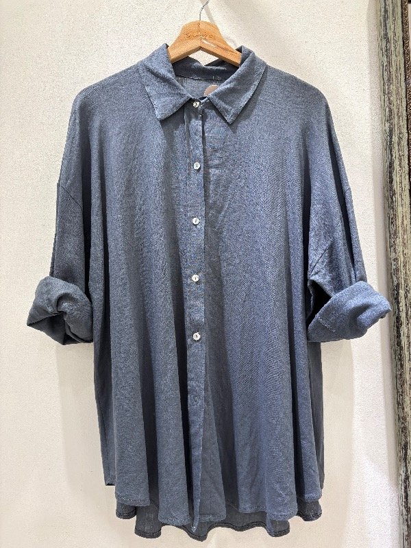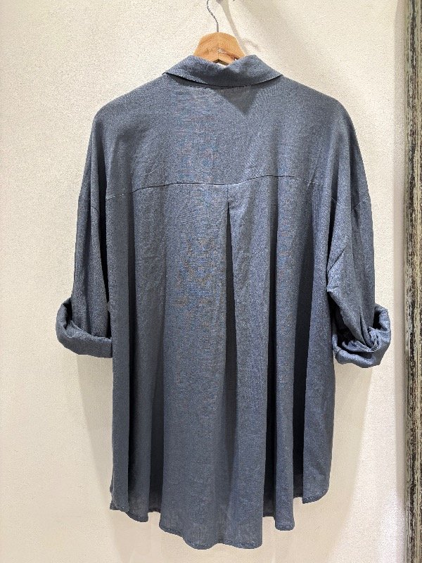 Maxi camisa de lino sin bolsillos y botones de nácar