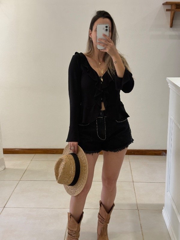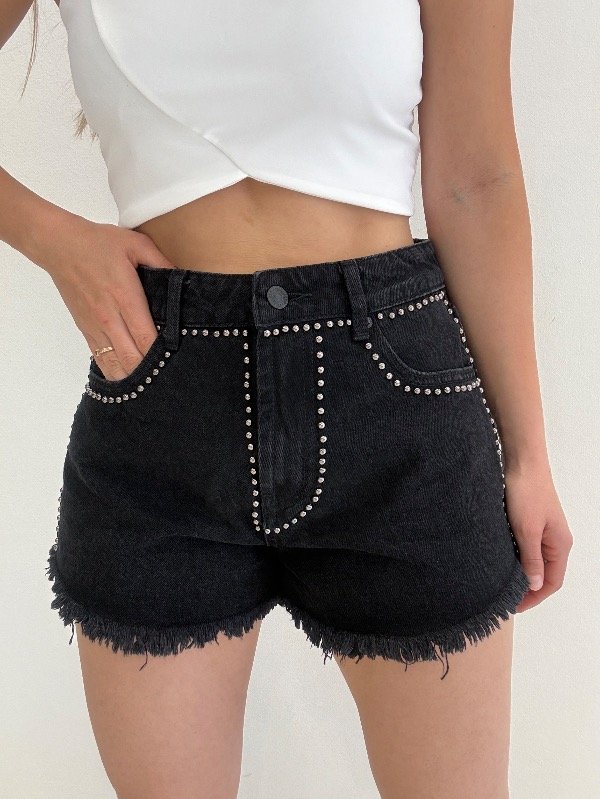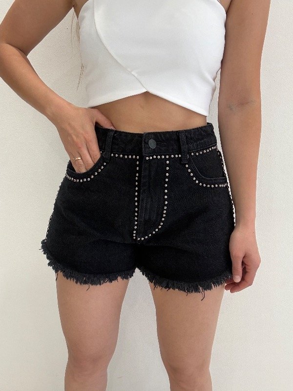 Short de jeans importado con tachas. Confección chica, (remiendo comprar un talle mas del que sos, si queres que te quede cómodo)