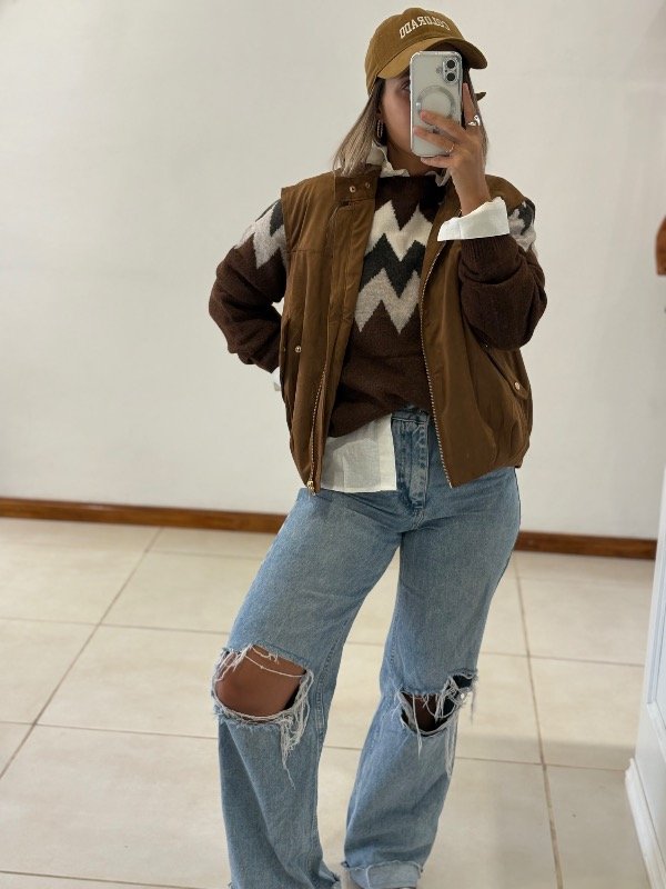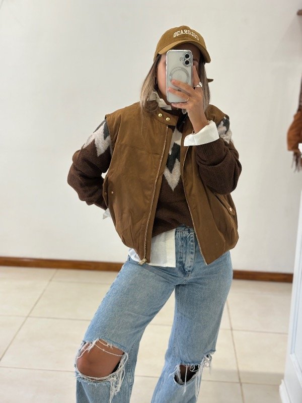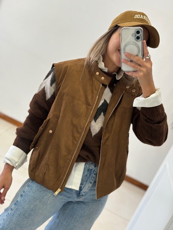 Chaleco importado tipo gamuza con cierre y bolsillos Forrado y con elástico en la parte inferior para hacer efecto globo.
