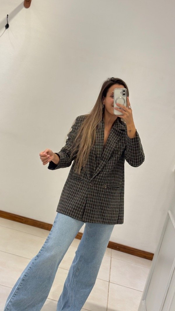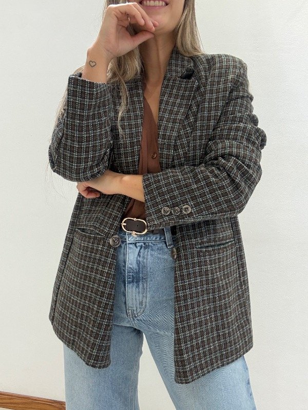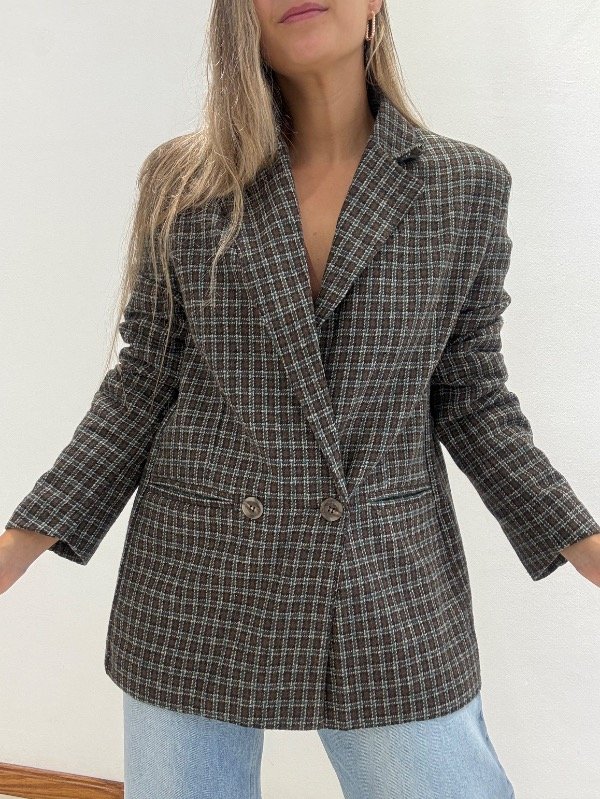 Saco con hombreras cruzado, cuadrille. Bolsillos. Forrado.