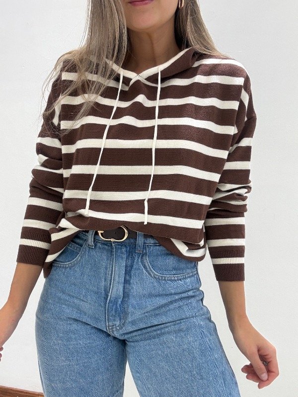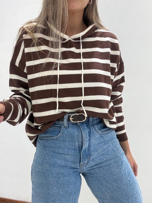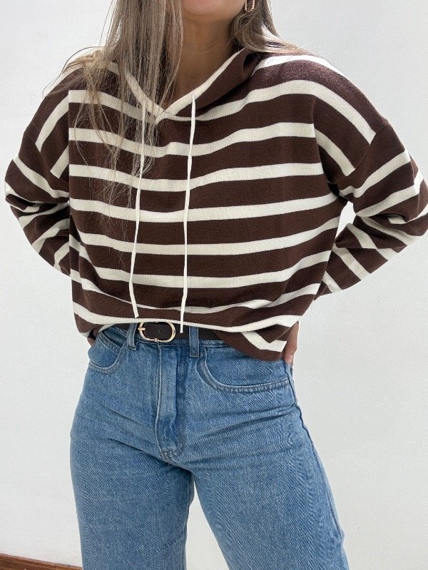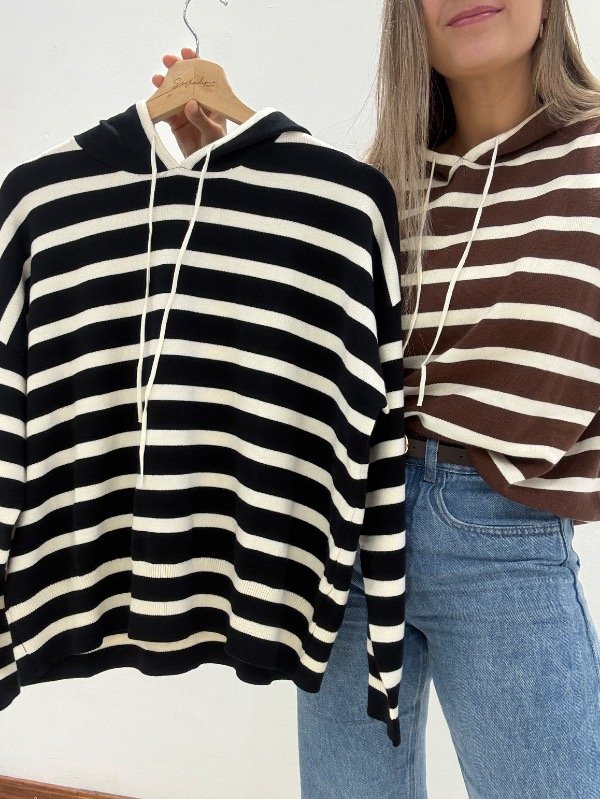 Sweater de bremer con lycra, importado con capucha y tiritas en el escote.