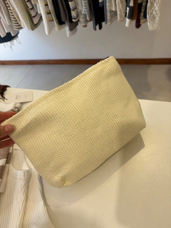 Sobre de rafia forrado. Bordado y con una borla. Marca Las Oreiro.