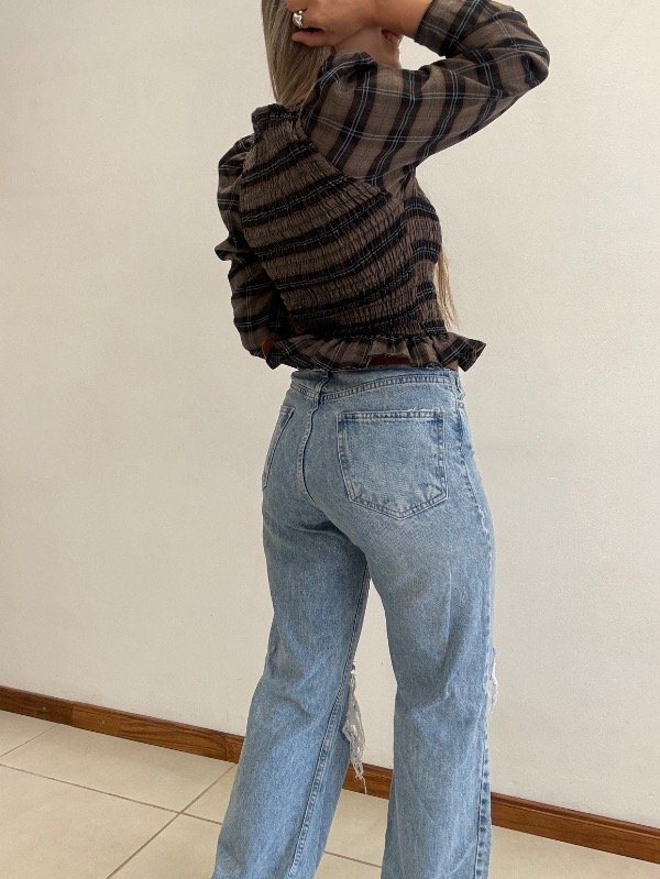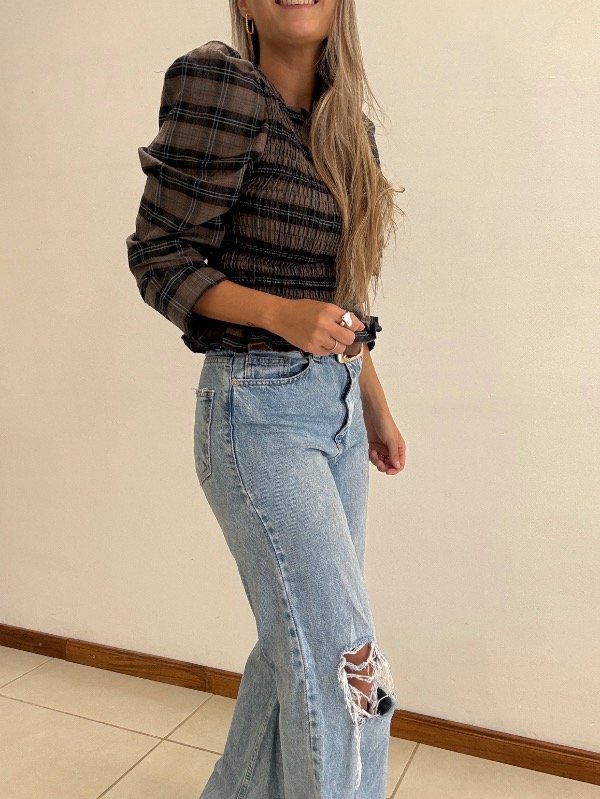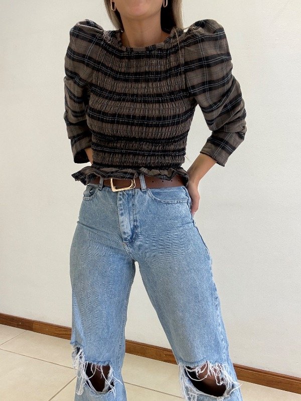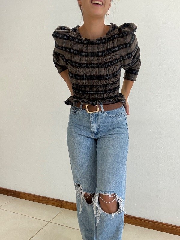 Blusa talle único con frunce en la parte del torso. Tener en cuenta que al tener elástico se estira. Tiene mangas princesa.