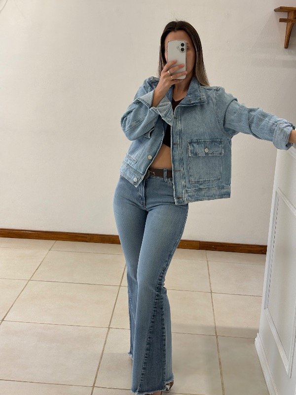 Jeans semi elastizado con recortes en botamanga y tiro medio.